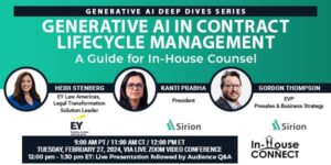 Sabrina CalviRelated postsGENERATIVE AI IN CONTRACT LIFECYCLE MANAGEMENTNovember 4, 2024Navigating ESG Agencies: Christine Uri Shares Her Top RecommendationsJune 21, 2024Navigating IP issues in Joint Development Agreements for In-House CounselNovember 4, 2024Previous postEssential Retail and E-commerce Updates for In-House CounselNext postGENERATIVE AI IN CONTRACT LIFECYCLE MANAGEMENT