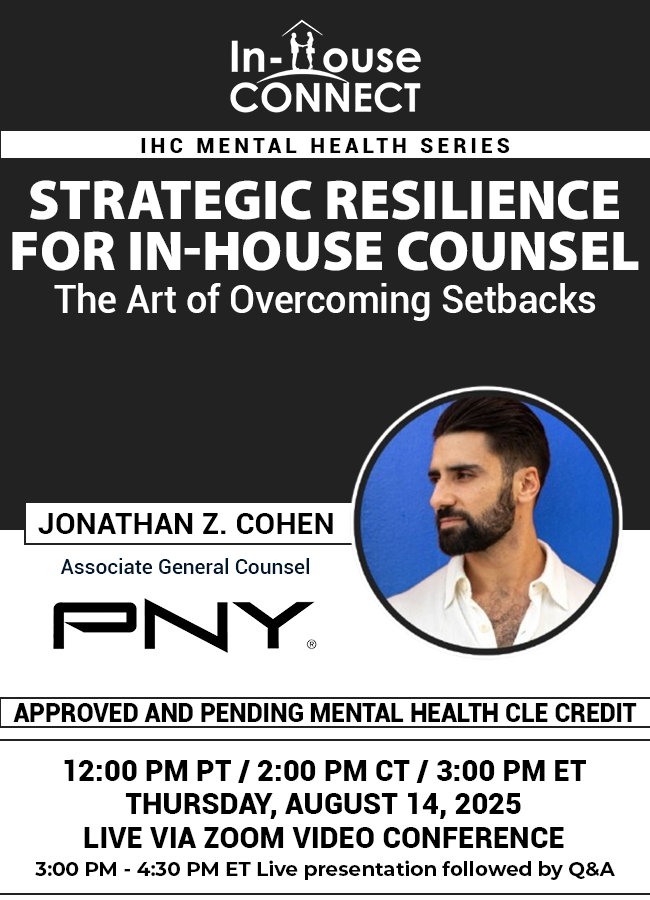 This program is FREE thanks to our gracious sponsor, Greenberg Traurig! If you can’t attend the live program, the recording will be available for viewing via our paid CLE library, In-House Connect On-Demand!