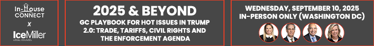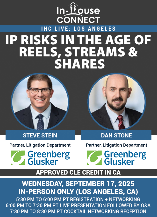FREE LIVE CLE CREDIT IS ONLY AVAILABLE FOR IN-HOUSE COUNSEL (FRACTIONAL GCs, GOVERNMENT ATTORNEYS, & ALSP ATTORNEYS INCLUDED) AND SUBSCRIBERS TO IN-HOUSE CONNECT ON-DEMAND.