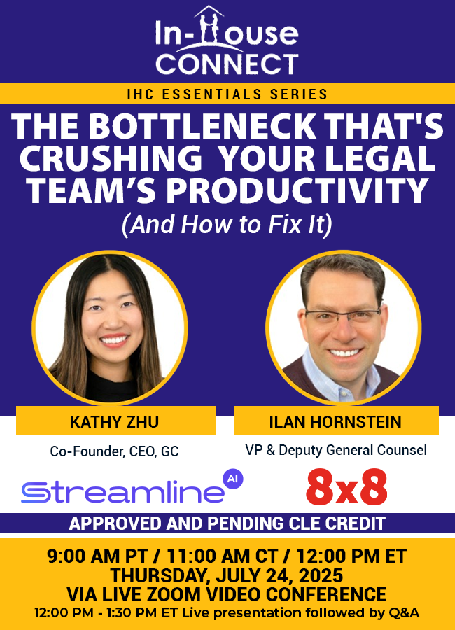 This session is built for in-house counsel, legal operations professionals, and legal team leaders who want to explore practical applications of AI without technical barriers. Whether you’re just getting started or looking to enhance your existing workflows, this session offers a clear and accessible path forward.