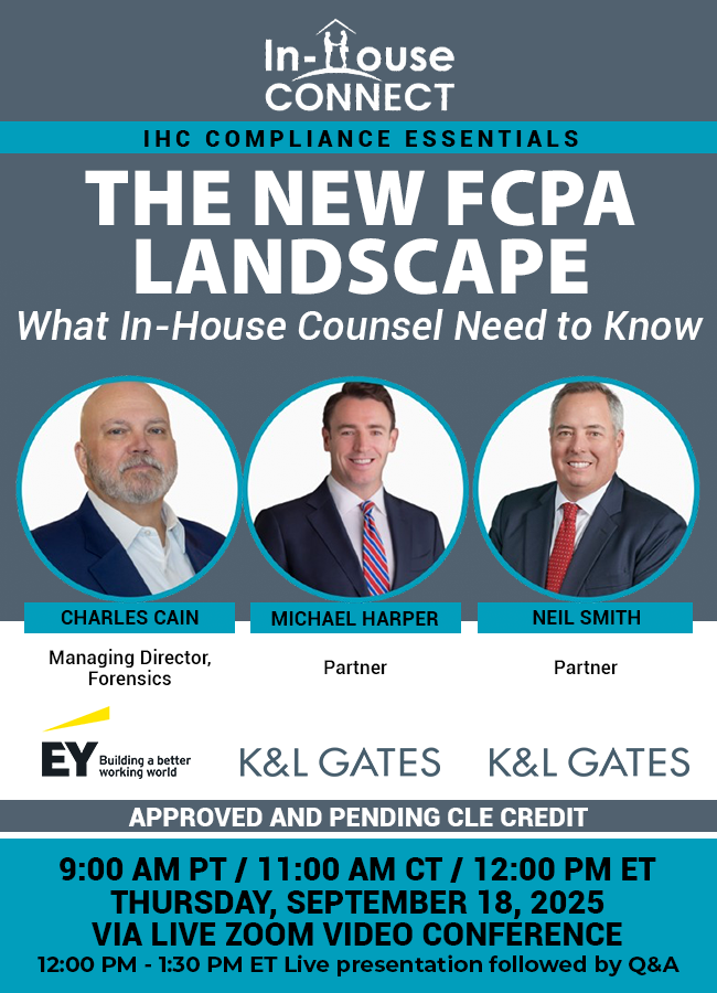 This program is FREE thanks to our gracious sponsor, LawVu— The AI-powered workspace for in-house legal teams! If you can’t make it to the live program, the recording will be available for viewing via our paid CLE library, In-House Connect On-Demand!