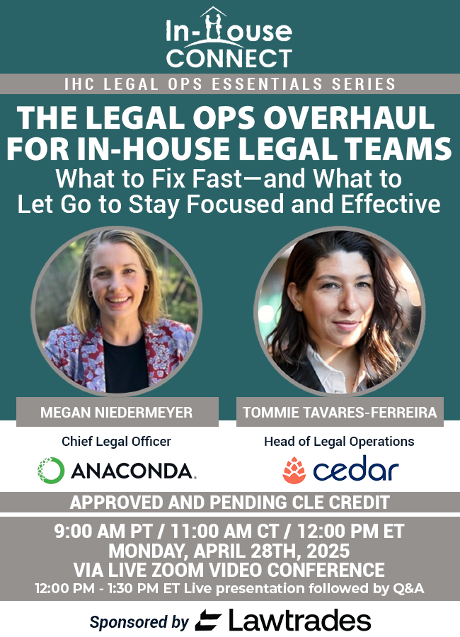 This program is FREE, thanks to our gracious sponsor, Lawtrades! If you can’t make it to the live program, the recording will be available for viewing via our paid CLE library, In-House Connect On-Demand!