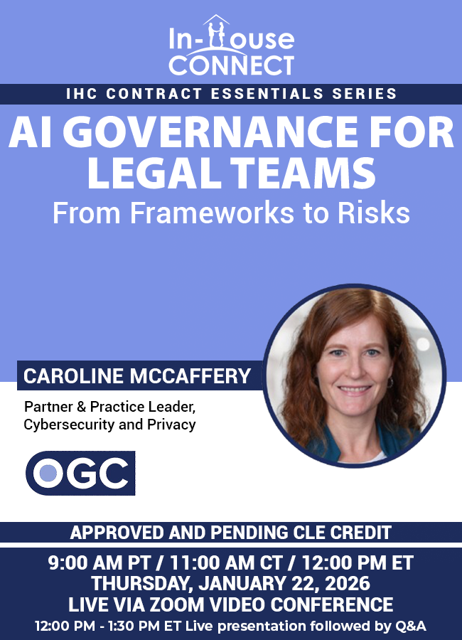On Thursday, January 15th at 12:00 PM ET, Alex Paul (formerly in-house at Twitter) will provide insights that help in‑house counsel understand how Product Counsel can drive product development, guide responsible innovation, and partner effectively with cross‑functional teams. Alex will share practical frameworks, real‑world examples, and forward‑looking strategies designed to help legal teams influence product direction while managing risk in fast‑moving environments.